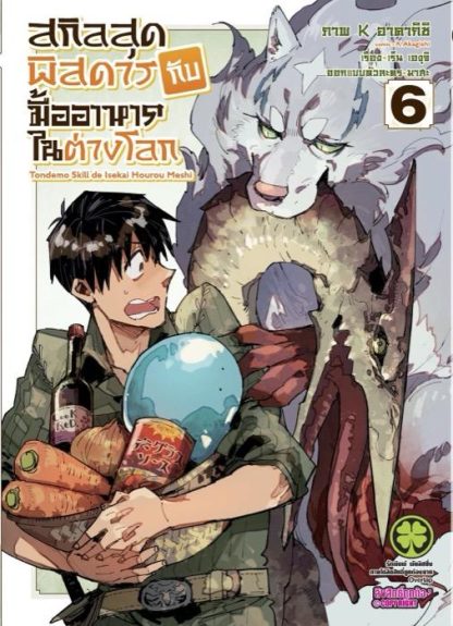 “เอาเนื้อนั่นไปต้มรึ! อดใจไม่ไหวแล้ว!!” กลุ่มมุโคด้าได้รับมอบหมายให้ไปปราบไวเวิร์นที่กำลังเข้าประชิดเมือง เฟลที่หมายมั่นปั้นมือจะเอาเนื้อรสดีมาให้ได้สอนเคล็ดลับการต่อสู้กับสัตว์อสูรบินได้ให้ซุย ก่อนจะออกล่าอย่างเมามัน ทั้งสองออกโรงปราบไวเวิร์นได้อย่างไม่ยากเย็น มุโคด้าได้ค่าตอบแทนจากการทำงาน และการขายวัตถุดิบจนอู้ฟู่ จึงซื้อ “อ่างอาบน้ำ” หลังจากที่ได้แช่น้ำจนเต็มอิ่มอย่างที่ไม่ได้ทำมานาน ก็ได้เวลาทำอาหารจากวัตถุดิบสุดหรูอย่างเนื้อไวเวิร์น! เฟลว่างจัดจึงออกล่า และเมื่อกลับมาก็พบกับสตูน่าอร่อย! แต่พอมุโคด้าเห็นเฟลเนื้อตัวมอมแมม ก็ยื่นคำขาดว่าถ้าไม่อาบน้ำก็ไม่ต้องกินข้าว… ช่วงเวลาอันยาวนานที่ได้พำนักอาศัยในเมืองคาเรลีน่าสิ้นสุดลงแล้ว? พบสัญญาณการเดินทางครั้งใหม่ในสกิลสุดพิสดารกับมื้ออาหารในต่างโลกเล่ม 6!